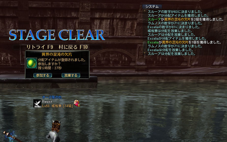 アイテムを拾うと、分配ルーレットに参加するか否かを要求されます。