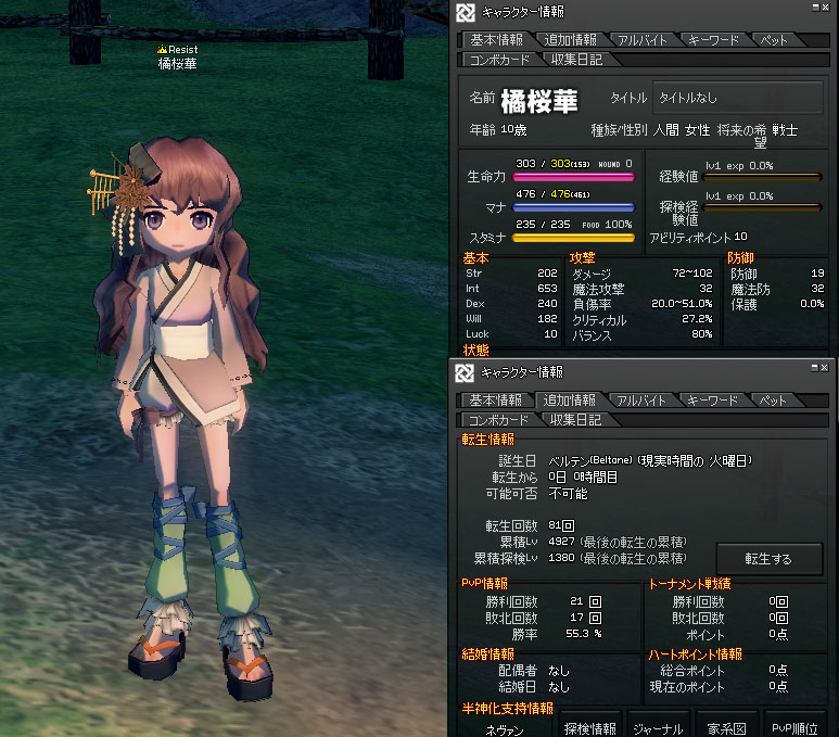 今回はあまりINする時間を作れなかったのでLvも低く