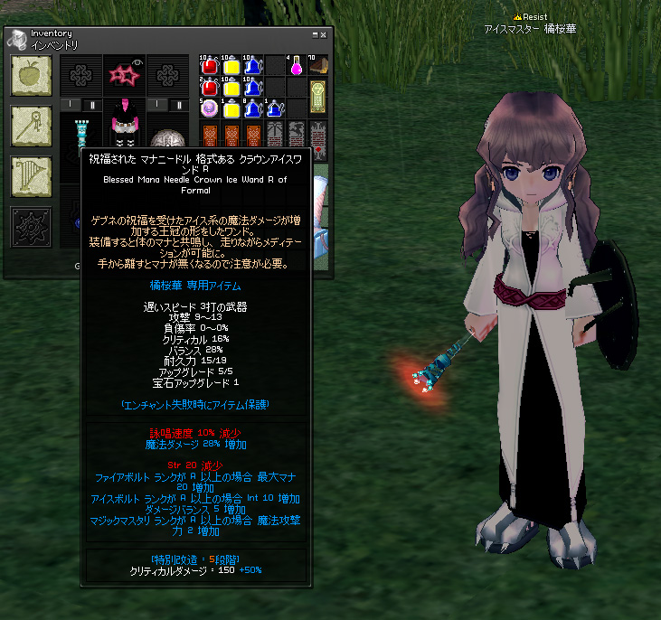 マナニードル 格式ある クラウンアイスワンド赤改造5段階Verこれで主力であるアイススピアや持ち替えFBLの火力アップです!