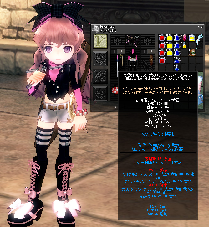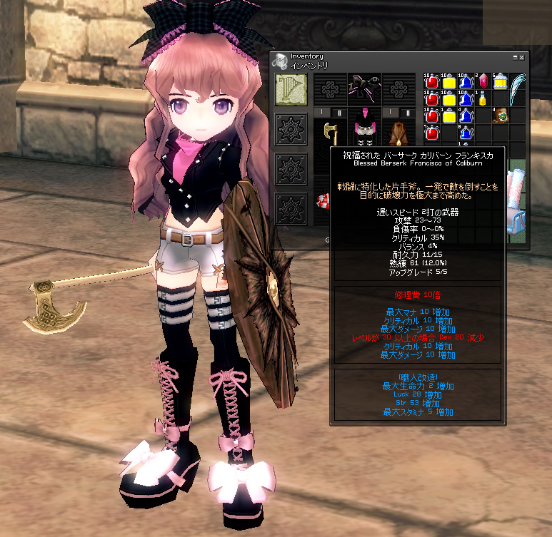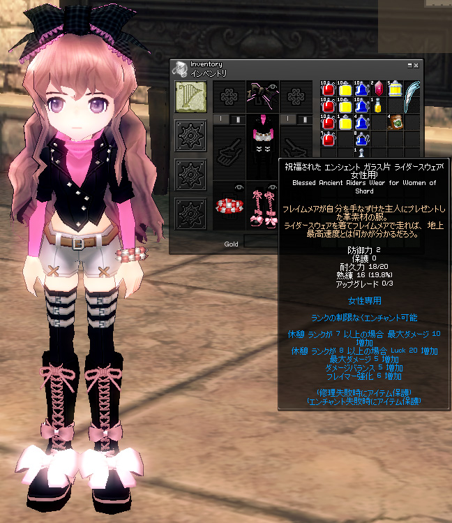 これで最大15、ラック20(クリ4%相当)、ついでにフレイマー強化6の服完成です。
