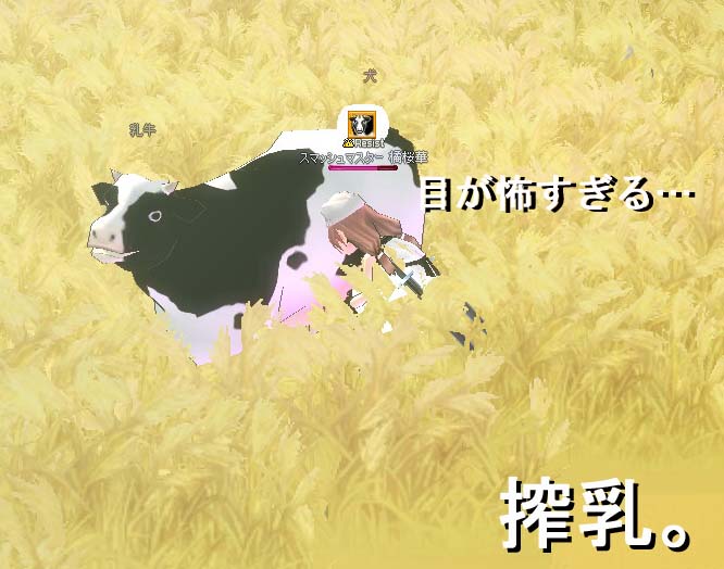 牛さんクリックで搾乳できます。ギュギュっとね。